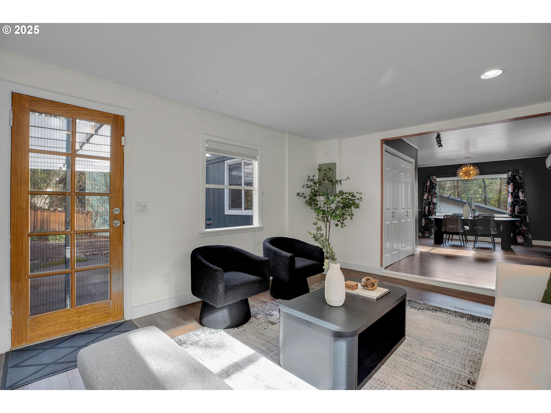 Dreaming of your own private, QUIET retreat in the hills? This exceptionally renovated and stylish home in an exceptionally safe part of Southwest Portland is just minutes away from downtown, but feels like a peaceful escape to nature. Situated on an extra-large lot, explore your own personal forest of mature trees, teeming with wildlife, overlooking the fully-fenced, low-maintenance backyard. An attractive exterior color scheme and classic covered front porch welcome you with visions of sipping your morning coffee while taking in the breathtaking views of the Southwest Hills. You’ll be a short hop to beloved Gabriel Park, eclectic Beaverton, I-5, some of the best-rated schools, and a super quick and easy commute to Nike and OHSU. Explore the stunning interior to find new laminate flooring, an openly flowing layout, new modern and artistic light fixtures, new baseboards, a light-filled living room, and a beautifully remodeled kitchen featuring butcher block countertops, new cabinetry, a farmhouse sink, a fashionable Portuguese tile backsplash, stainless-steel appliances, a gas range, and a spacious adjoining dining area with a gorgeous view. Brand new mini splits will keep you cool in the summer and warm in the winter, while keeping energy costs down. Multiple rooms offer possibilities for conversion to additional bedrooms. Other features: Basement storage w/ new secure exterior door, attic storage with easy interior access, updated electrical, sump pump, French drain, security system, new gutters w/ gutter guards and foundation. *Located on a quiet side street away from Beaverton-Hillsdale Hwy, not on the highway.* If you love the serenity and lushness of nature, but the convenience of the city center, don’t miss out on this elegantly updated home. *Lots of Updates *PLENTY OF STREET PARKING FOR GUESTS. [Home Energy Score = 6. HES Report at https://rpt.greenbuildingregistry.com/hes/OR10064937]